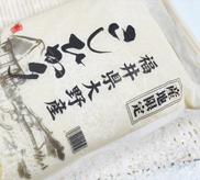 的「產地限定米」,盆地地形造成的日夜溫差、富含氨基酸和礦物質的肥沃土壤、以及清澈優質的自然湧泉(水之鄉,名水百選之一),孕育出美味的頂級優質米,並獲越前農業協同組合一等米的檢驗證明書。